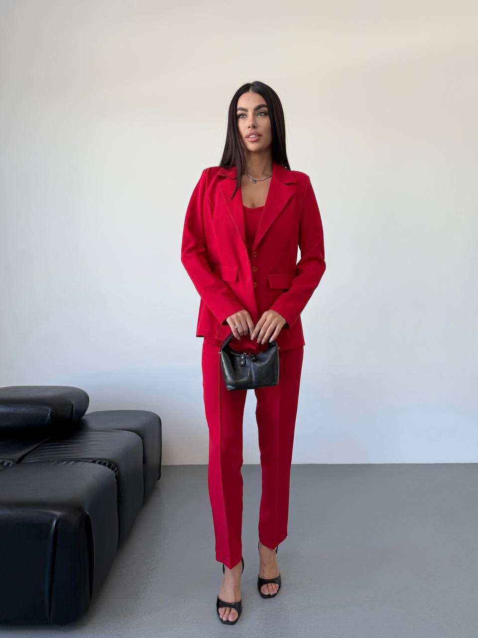 Костюм-тройка: топ+брюки сзади на резинке+пиджак с подплечниками красный