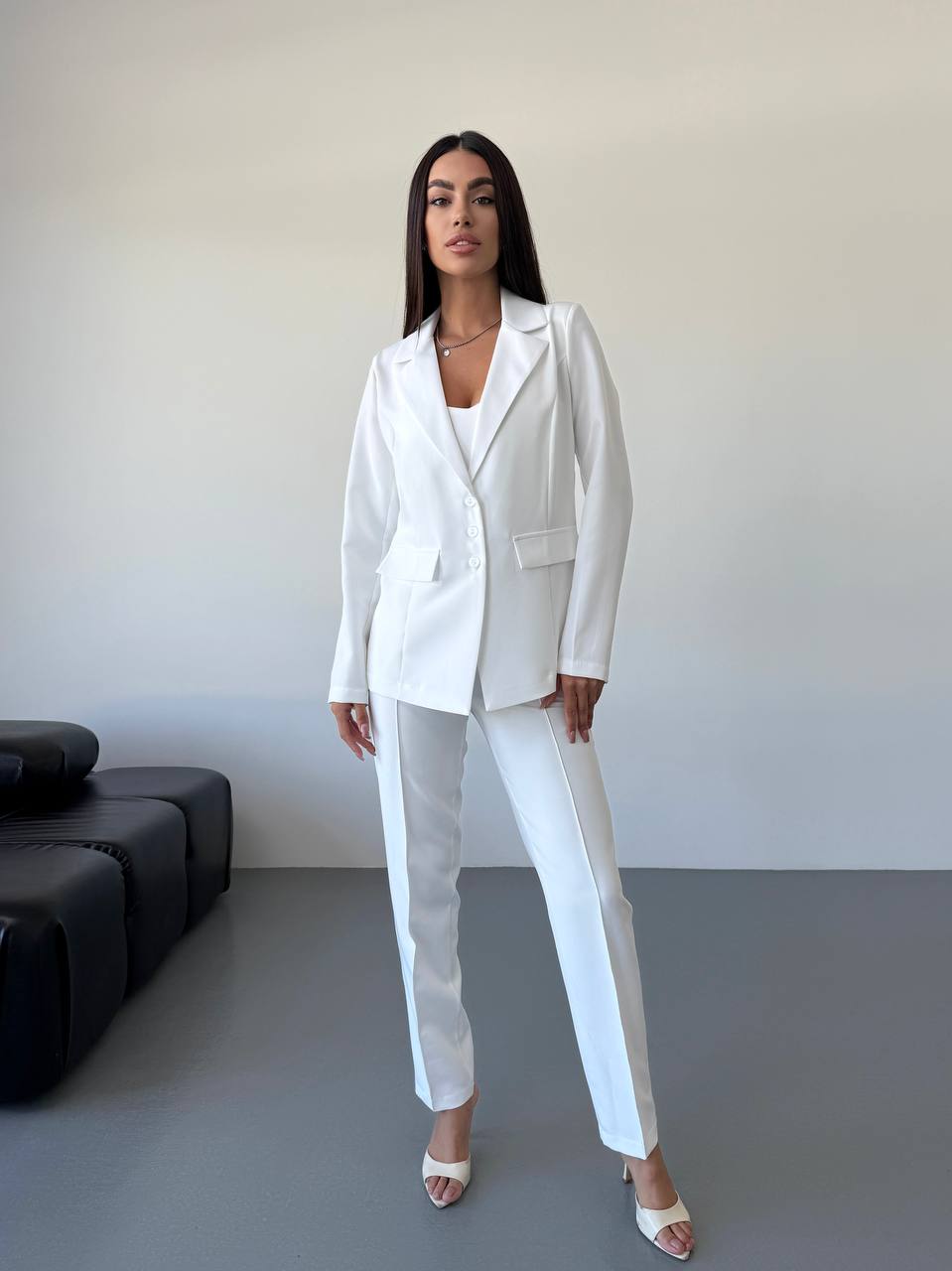 Костюм-тройка: топ+брюки сзади на резинке+пиджак с подплечниками молочный