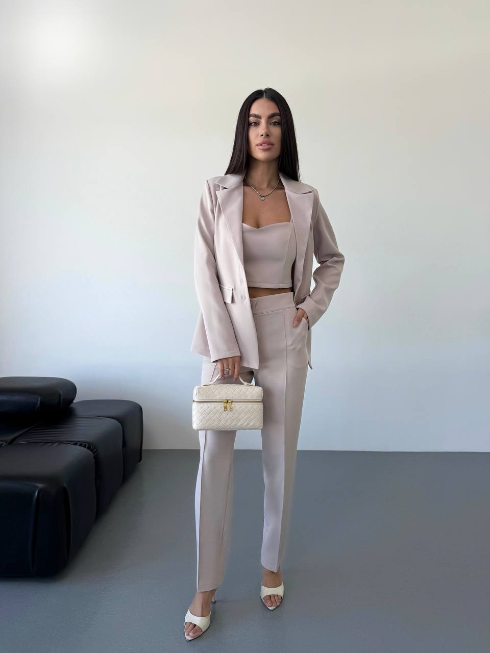 Костюм-тройка: топ+брюки сзади на резинке+пиджак с подплечниками бежевый