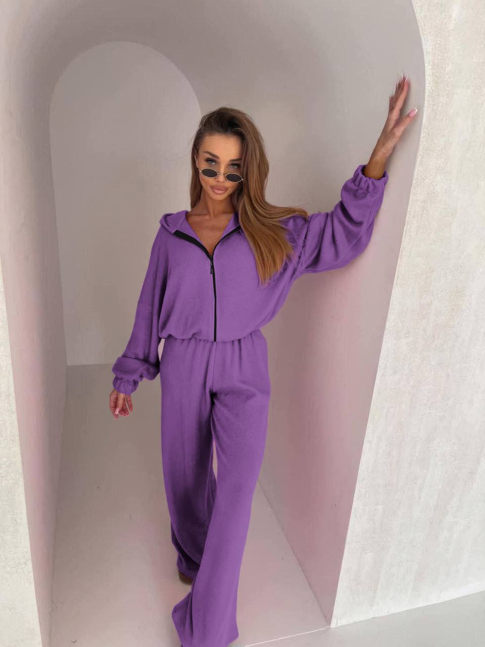 Костюм тройка: топ+укороченная кофта с резинкой+свободные штаны фиолет