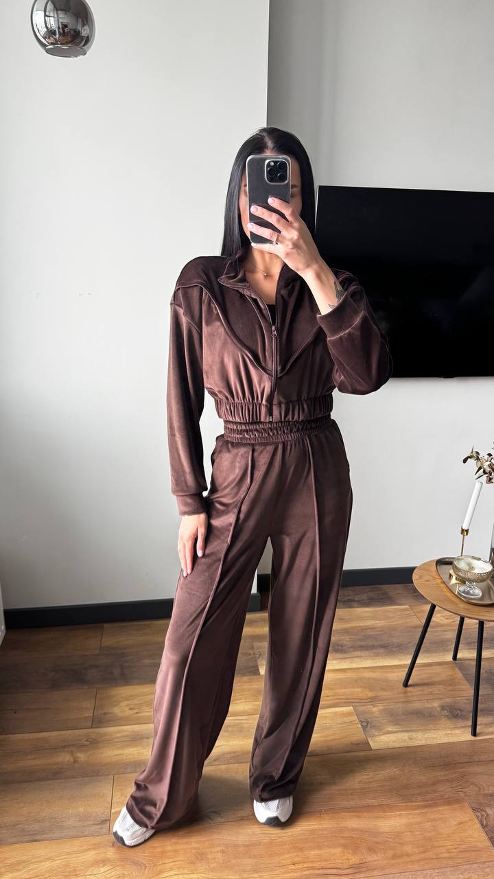 Костюм тройка велюр плюш: худи+брюки+топ шоколад
