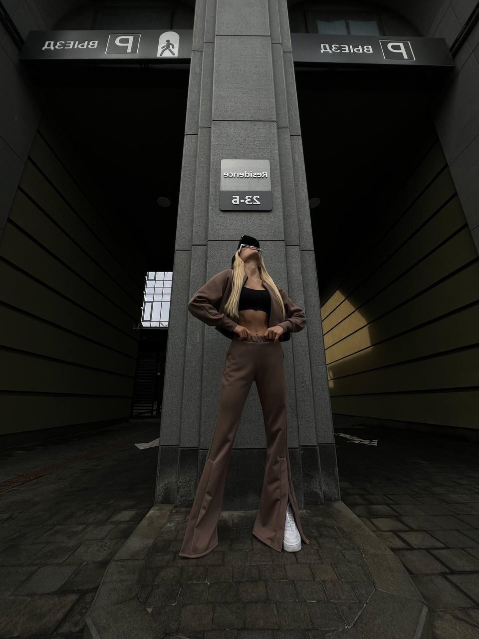 Головна » Магазин » Одяг » Жіночі спортивні костюми » Костюм (укороченная кофта+брюки сбоку рабочая молния) кофе с молоком
