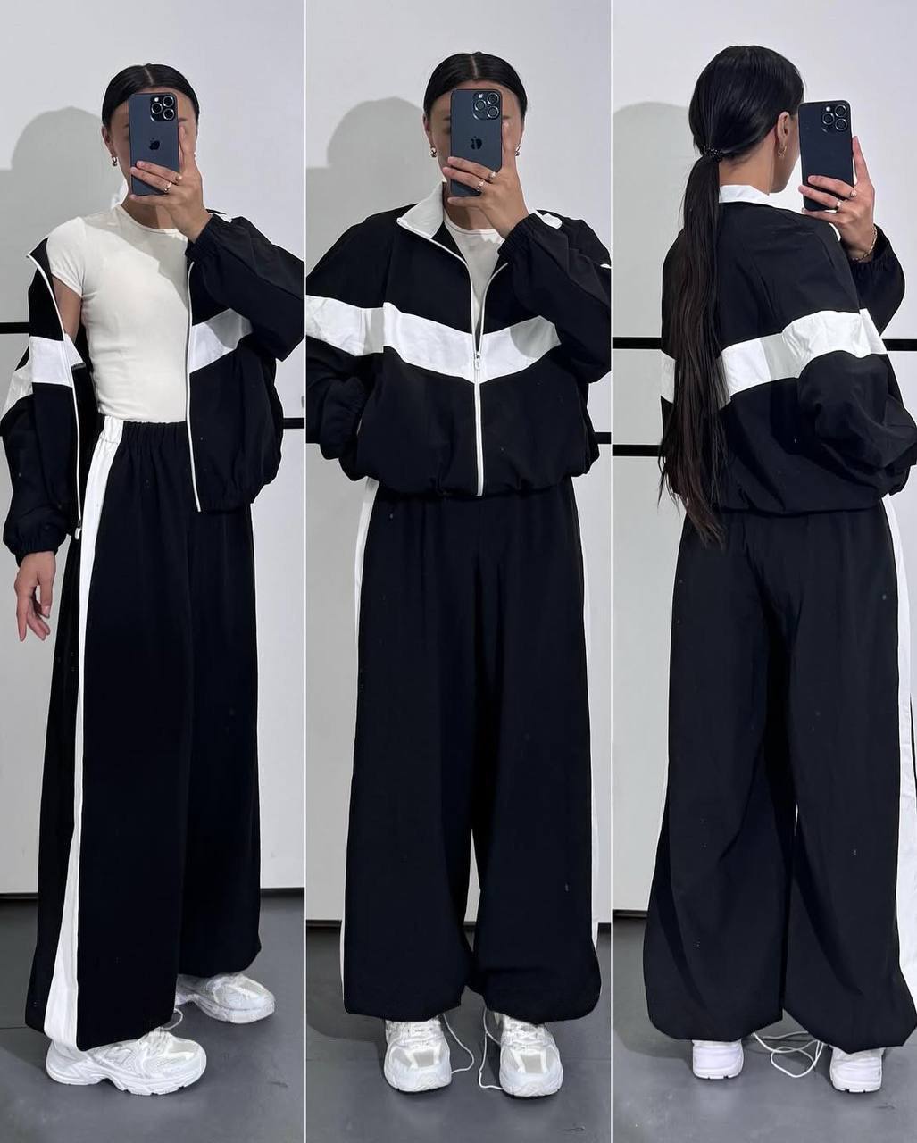 Костюм в стиле ретро: Оверсайз штаны внизу на затяжках+кофта (плащевка) черный