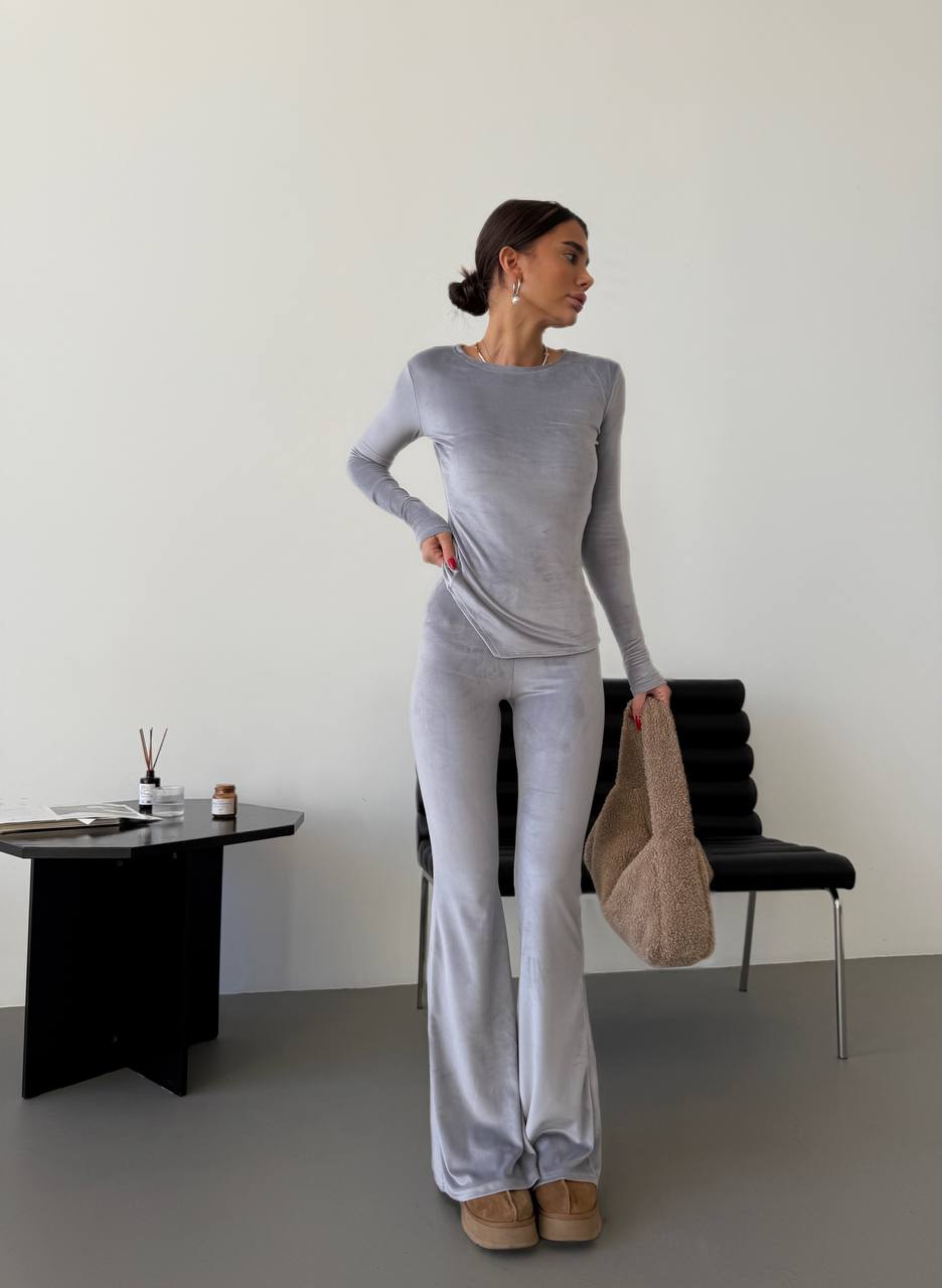 Костюм велюрово-плюшевый: кофта+брюки-клеш серый