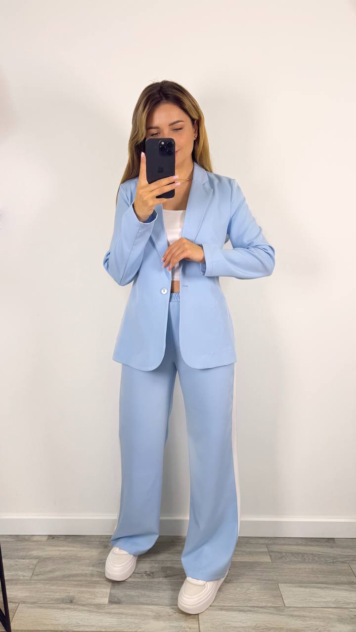 Костюм жакет приталенный, очень красиво подчеркивает фигуру, застегивается на 1 пуговицу.