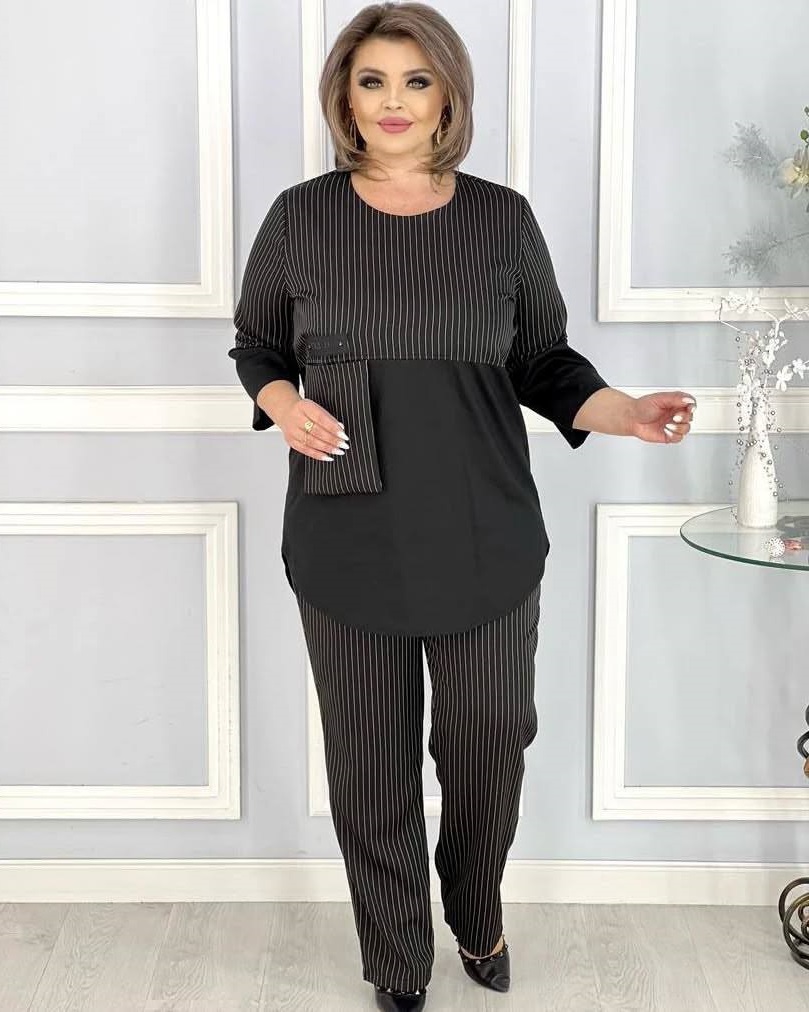 ▫️Элегантный костюм-двойка. Верх кофты из полоски-тиар, низ из крепкостюмки,
