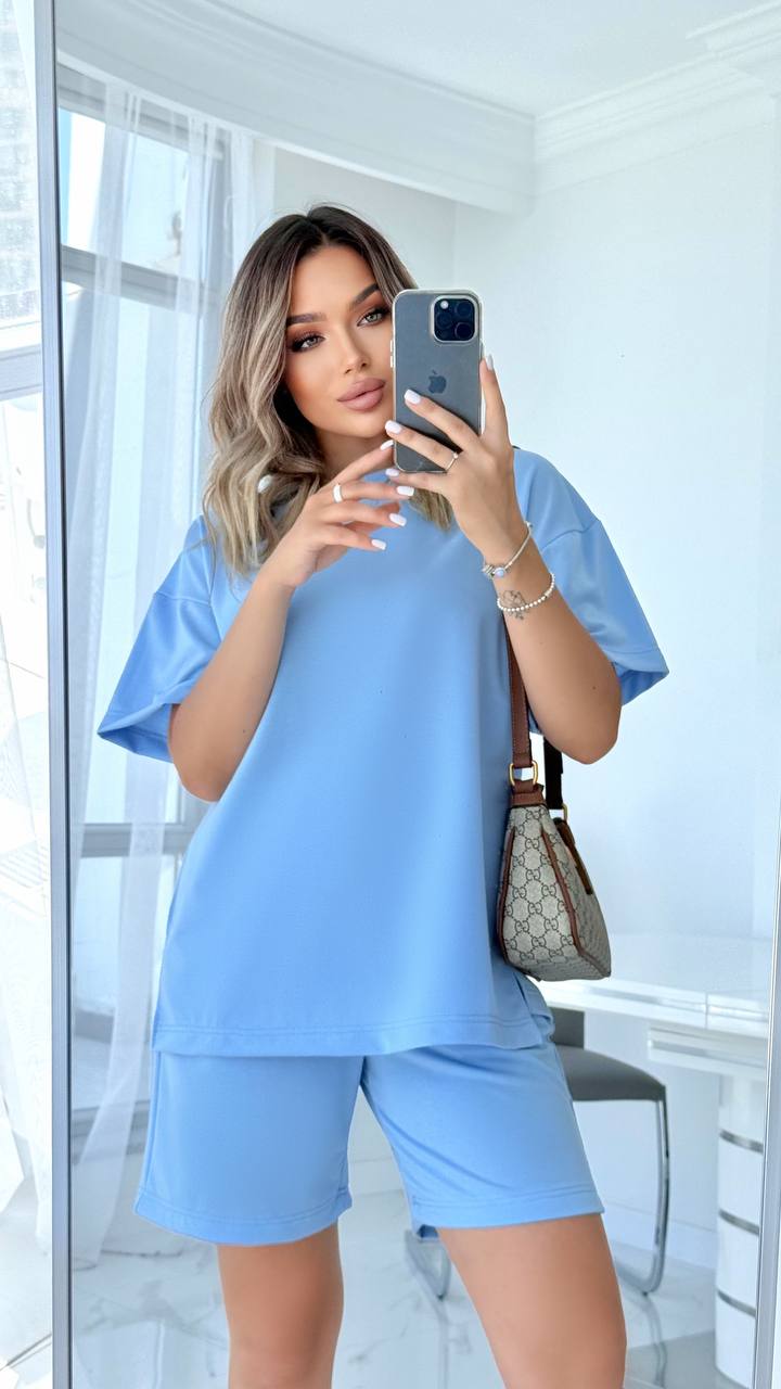 Головна » Магазин » Одяг » Жіночі спортивні костюми » Костюм женский оверсайз (Шорты + футболка) двунитка голубой