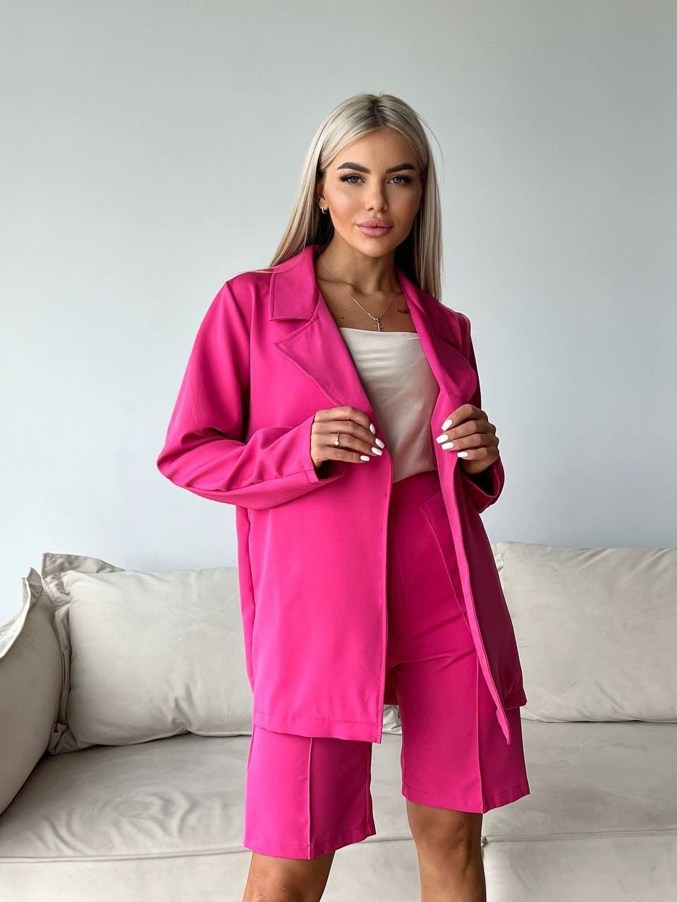 Головна » Магазин » Одяг » Жіночі костюми » Костюм женский (шорты удлиненные+пиджак английский воротник) костюмка малина