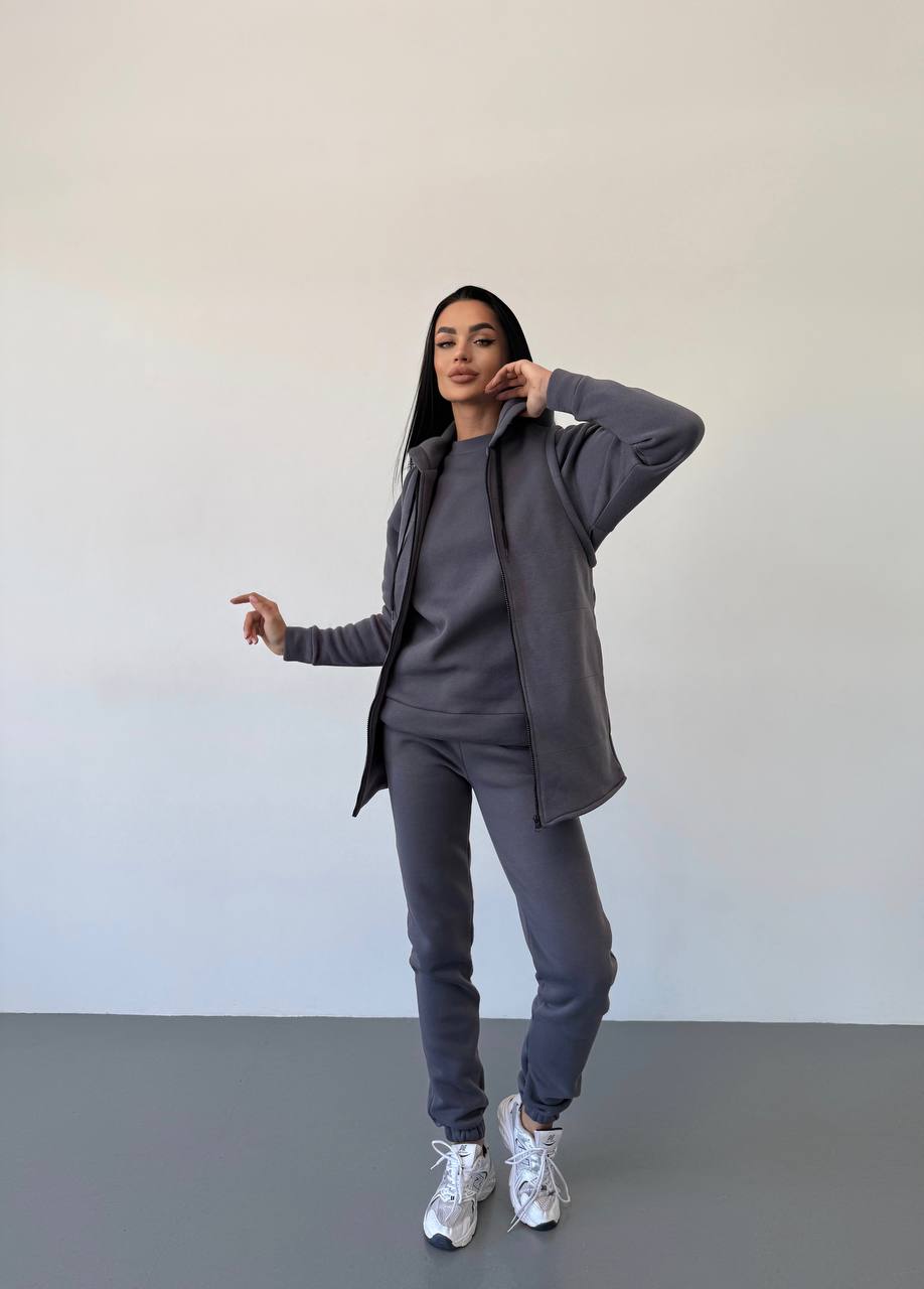 Костюм женский тройка (жилетка, брюки, кофта) трехнить с начесом графит