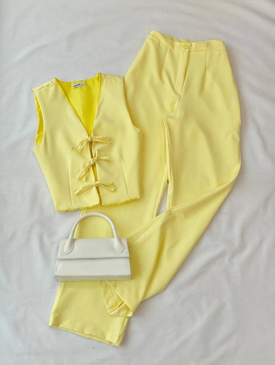 Костюм жилет с бантиками + штаны палаццо из плотной ткани желтый