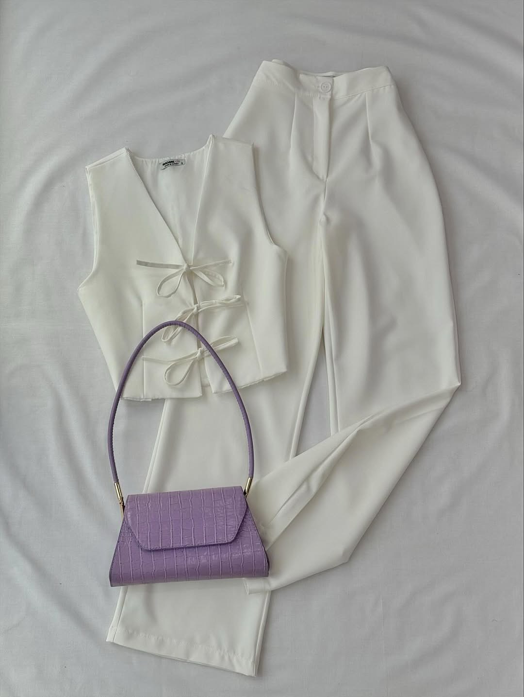Костюм жилет с бантиками + штаны палаццо из плотной ткани молоко