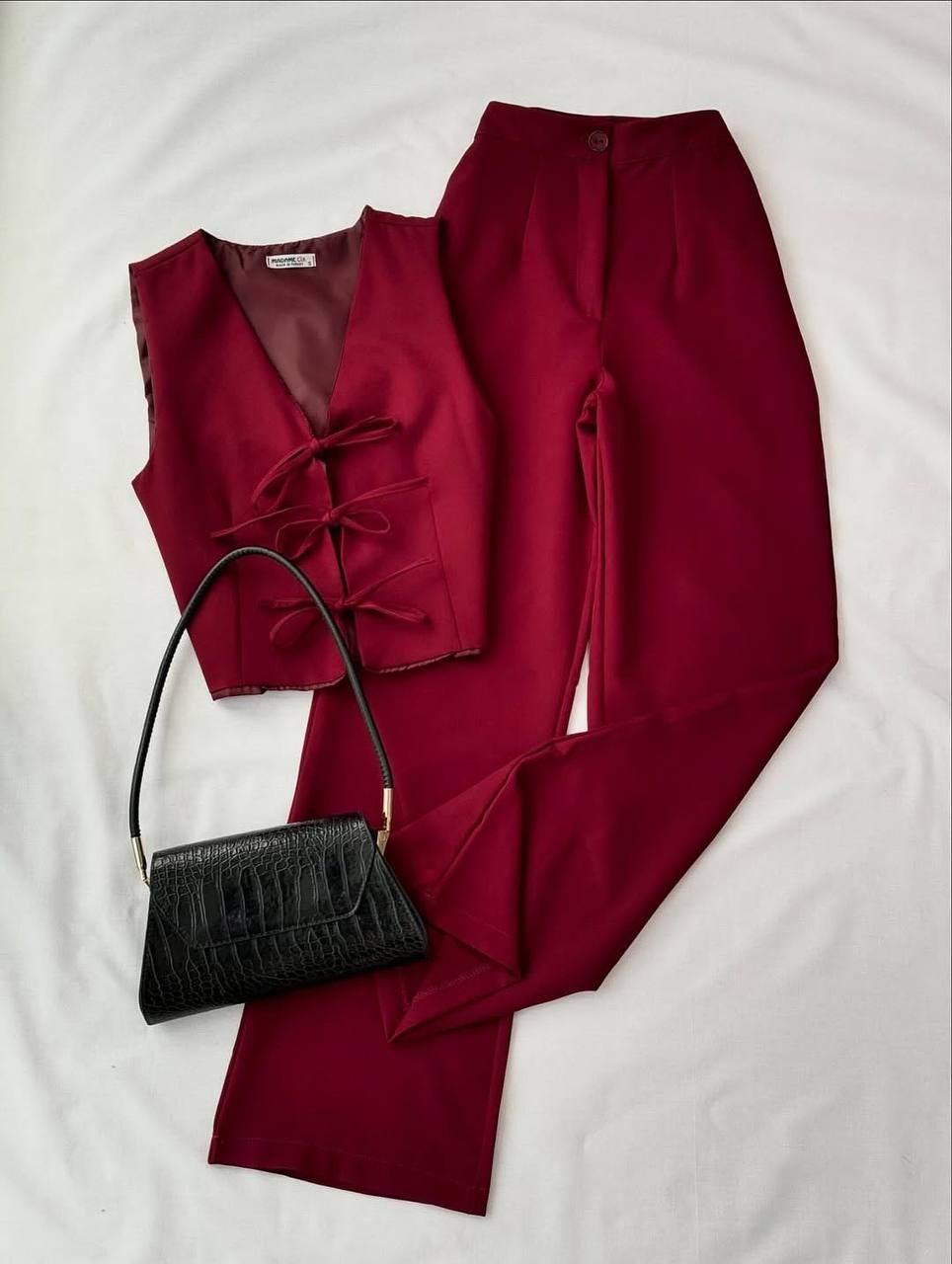 Костюм жилет с бантиками + штаны палаццо из плотной ткани бордо