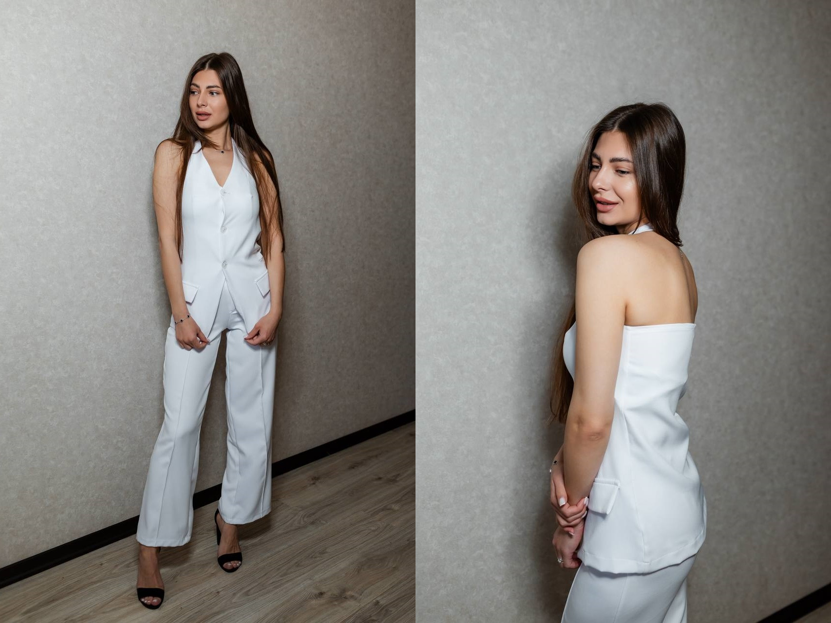 Головна » Магазин » Одяг » Жіночі костюми » Костюм (жилет с открытой спинкой+брюки укороченные со стрелками) белый