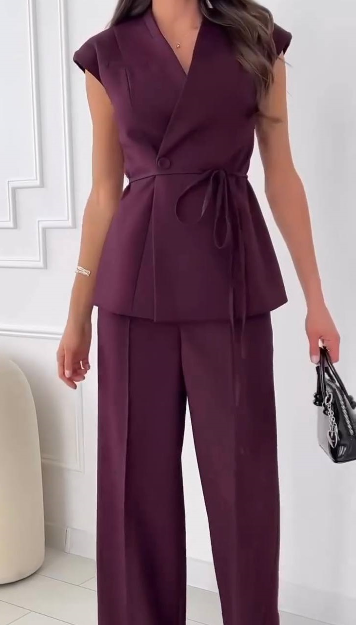 Костюм (жилет с поясом+брюки свободного кроя) костюмка марсала