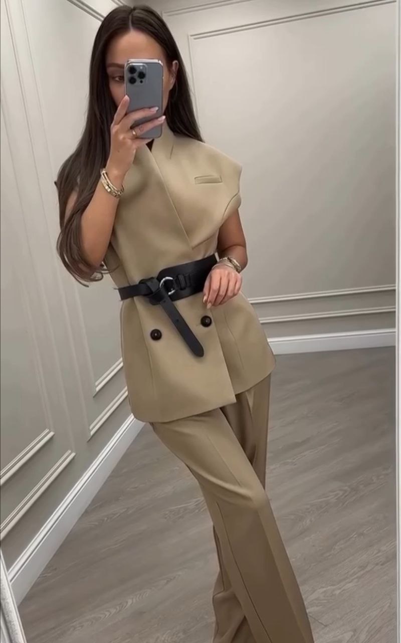 Костюм (жилетка на подкладке+классического кроя брюки) БЕЗ РЕМНЯ бежевый