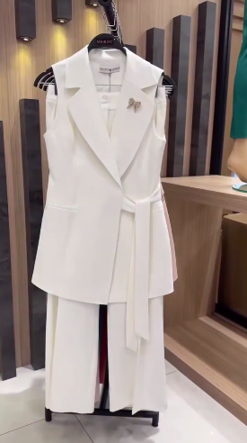 Головна » Магазин » Одяг » Жіночі костюми » Костюм (жилетка на запах под пояс+классические брюки) белый
