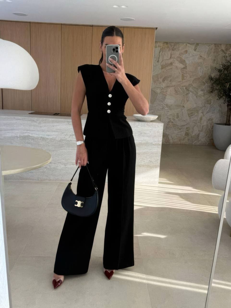 ✨Костюм состоит из жилетки приталенного кроя на пуговицах с V-образным вырезом и брюк с высокой посадкой и стрелками.