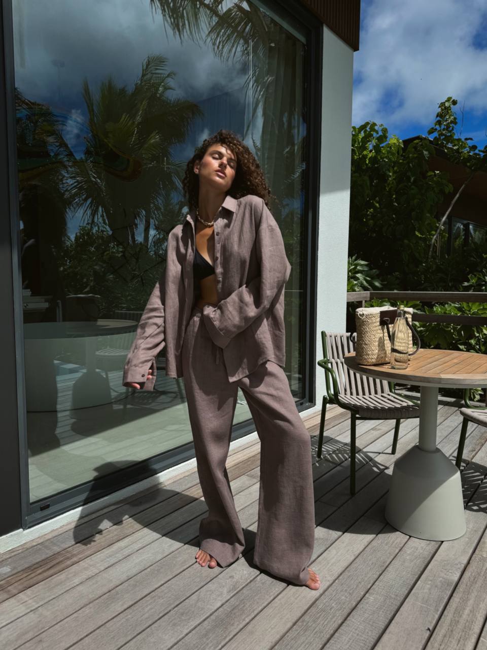 Головна » Магазин » Одяг » Жіночі костюми » Костюмчик 2-ка: рубашка+штаны (лен) шоколад