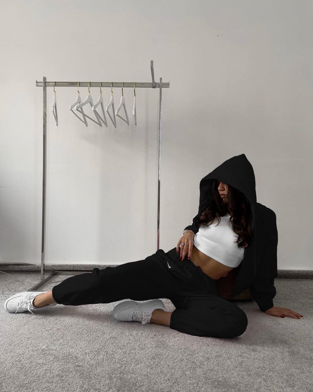 Как всегда мы уделили дополнительное внимание к деталям: накат, двойной капюшон, шнурки на брюках в цвет ткани.