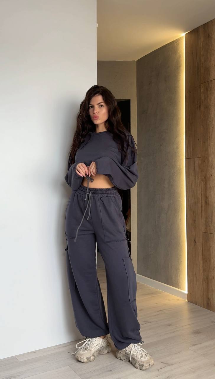 Будьте першим, хто залишив відгук “Костюмчик оверсайз свободное худи+штаны палаццо (тринитка петля) графит”“