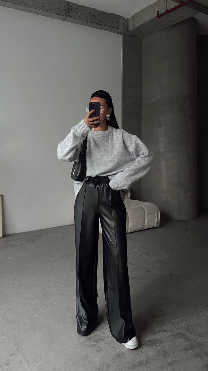 Спортивный вариант брюков из эко кожи, визуально удлиняющие ножки