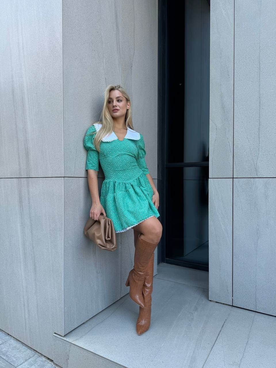 Головна » Магазин » Одяг » Сукня туніка сарафані » Красивое платье с белым воротником мята