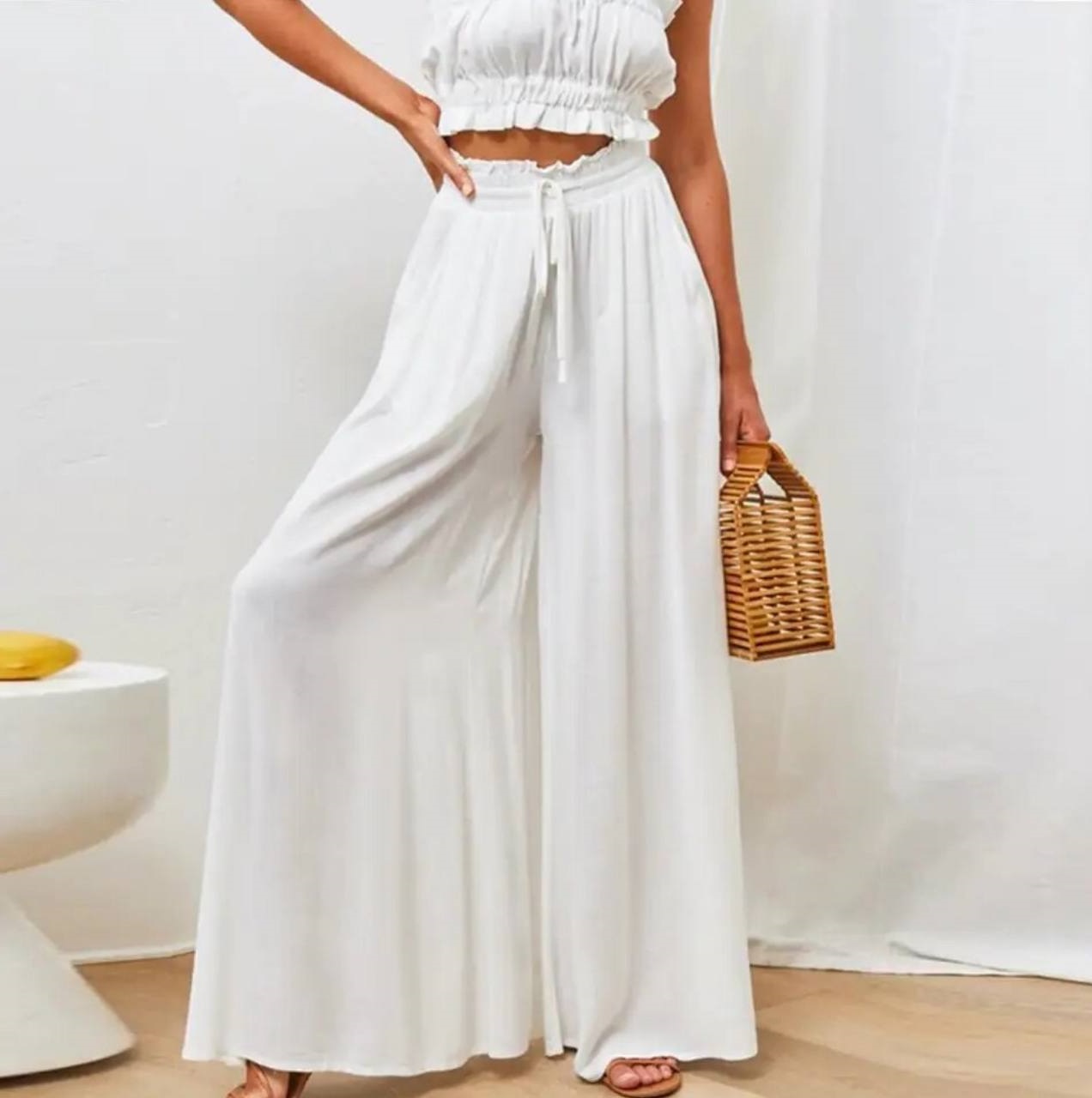Головна » Магазин » Одяг » Жіночі штани джинси штани гетри » Красивые широкие брюки талия на резинке белый