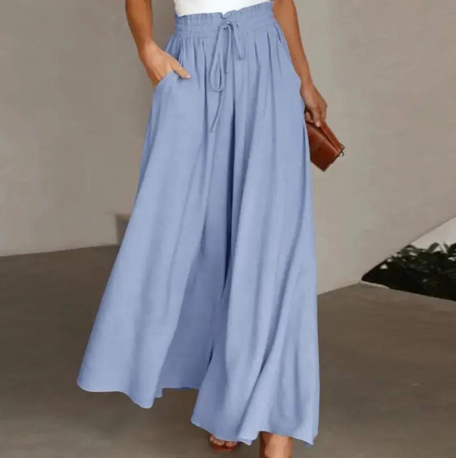 Головна » Магазин » Одяг » Жіночі штани джинси штани гетри » Красивые широкие брюки талия на резинке голубой