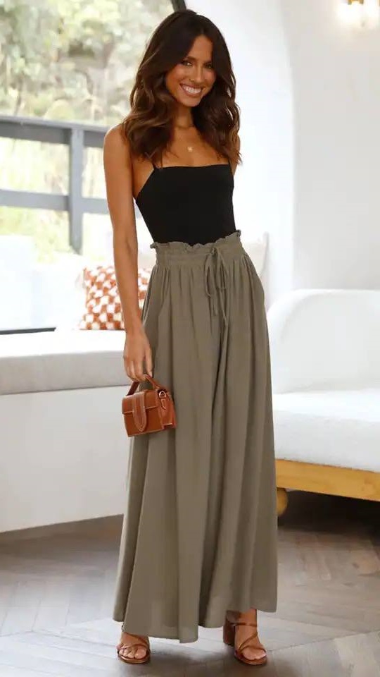 Головна » Магазин » Одяг » Жіночі штани джинси штани гетри » Красивые широкие брюки талия на резинке хаки
