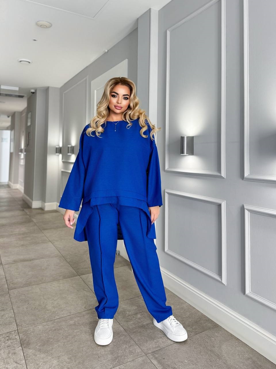 Головна » Магазин » Одяг » Жіночі костюми » Красивый льняной костюм свободного кроя (брюки+кофта) синий
