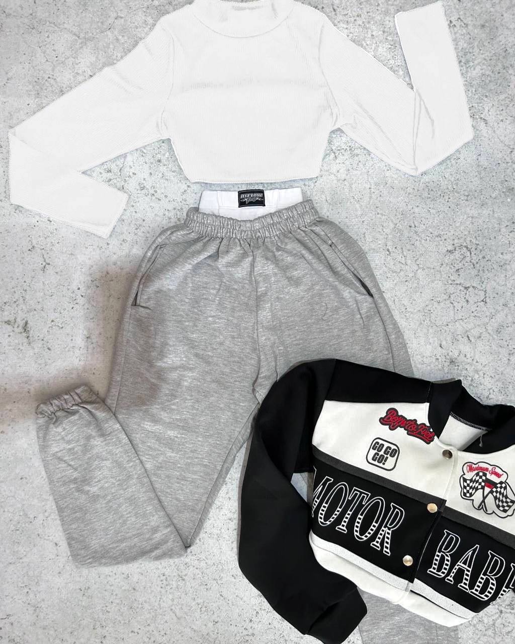 Крутой Костюм: (топ + модные брюки) белый + серый