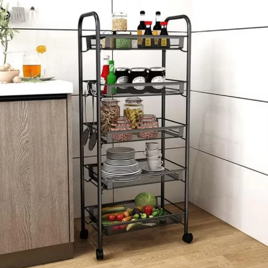 Тонкая тележка для хранения станет вашим семейным помощником в хранении речей. Сбоку есть 4 крючка для цепляния мелких предметов. Можно многое положить.