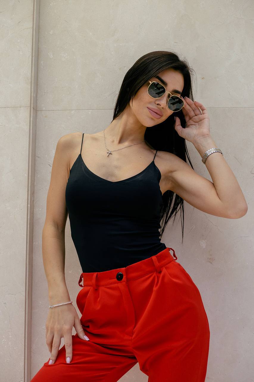 Лаконичный топ на тонких бретелях – универсальная базовая модель для любого гардероба.