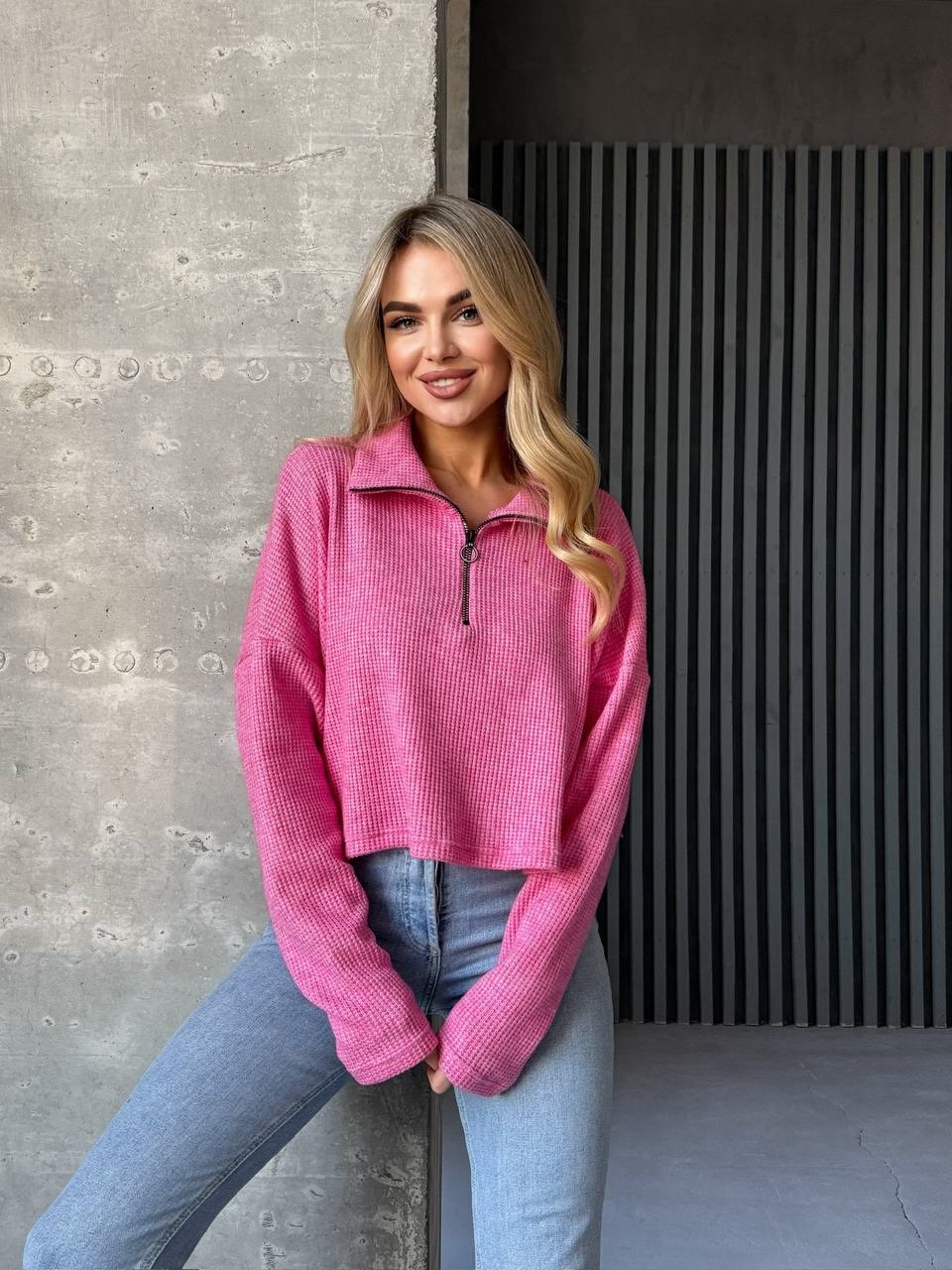 Легкая базовая кофточка с воротничком и замочком малина