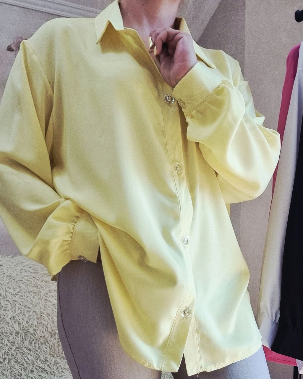 Легкая котоновая рубашка свободного кроя лимонный