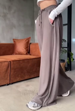 Головна » Магазин » Одяг » Жіночі штани джинси штани гетри » Легкие брюки с боковыми кантами+талия на резинке мокко