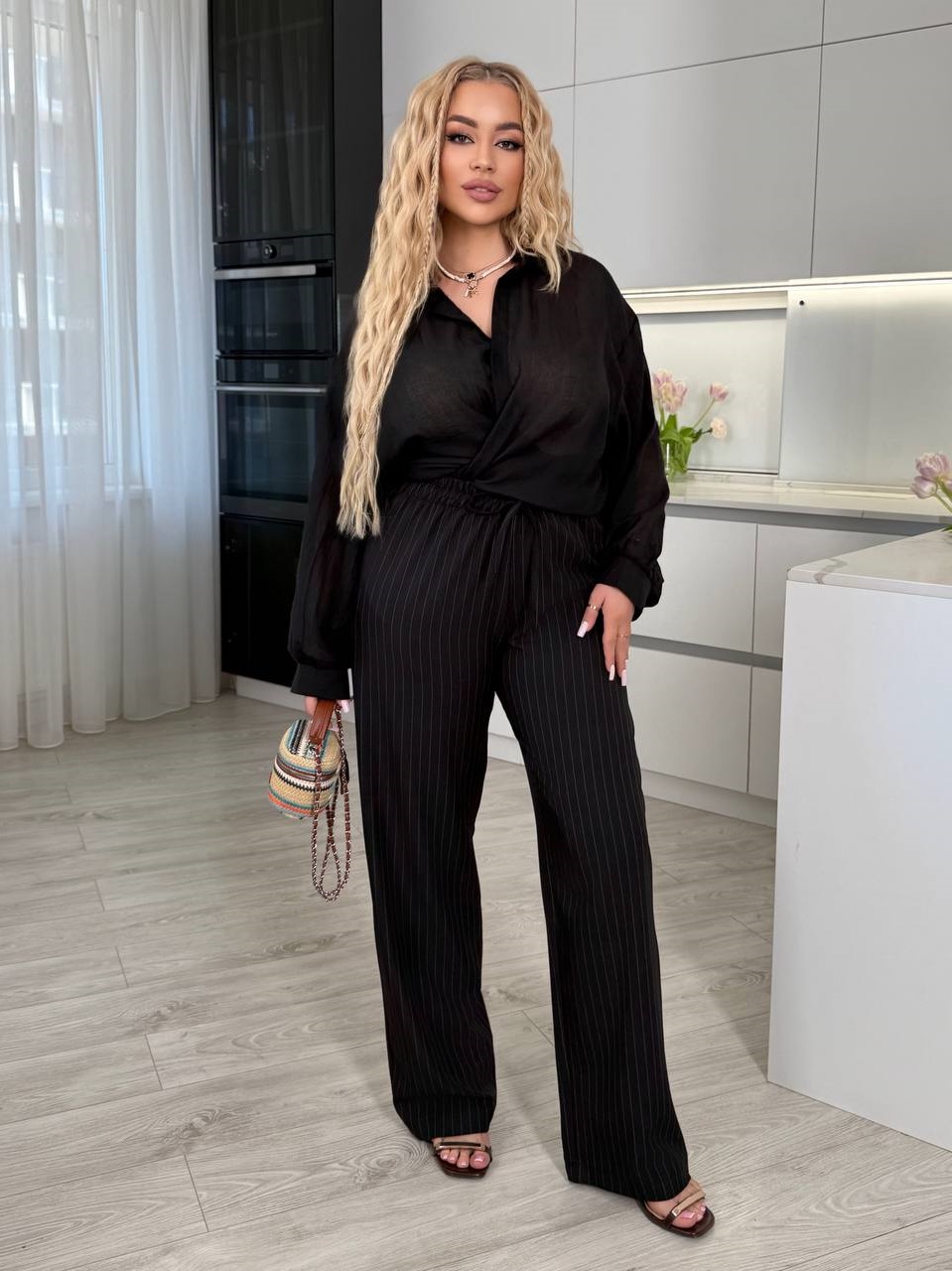 Будьте першим, хто залишив відгук “Легкие Брюки талия на резинке в полоску черный”“