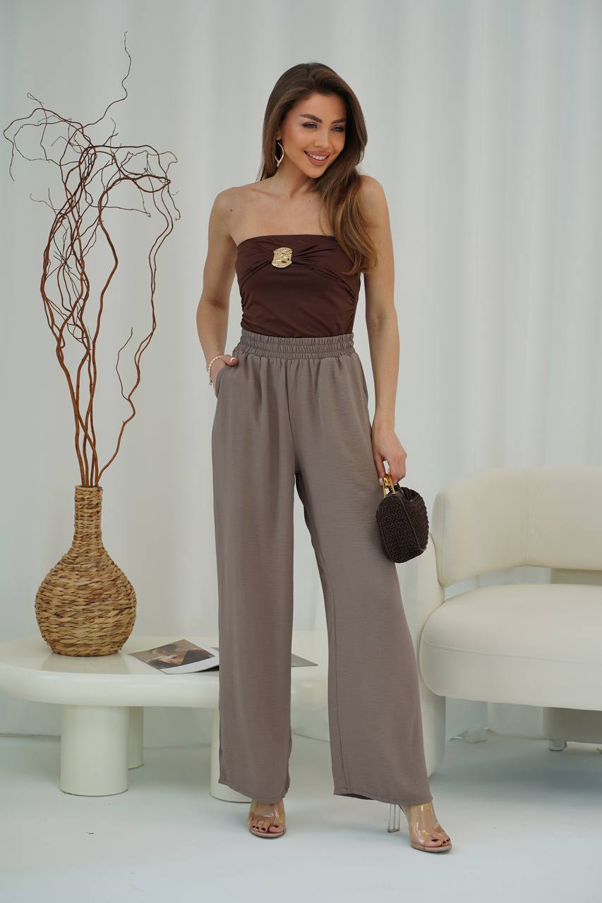 Легкие летние штаны-палаццо (американская жатка) мокко