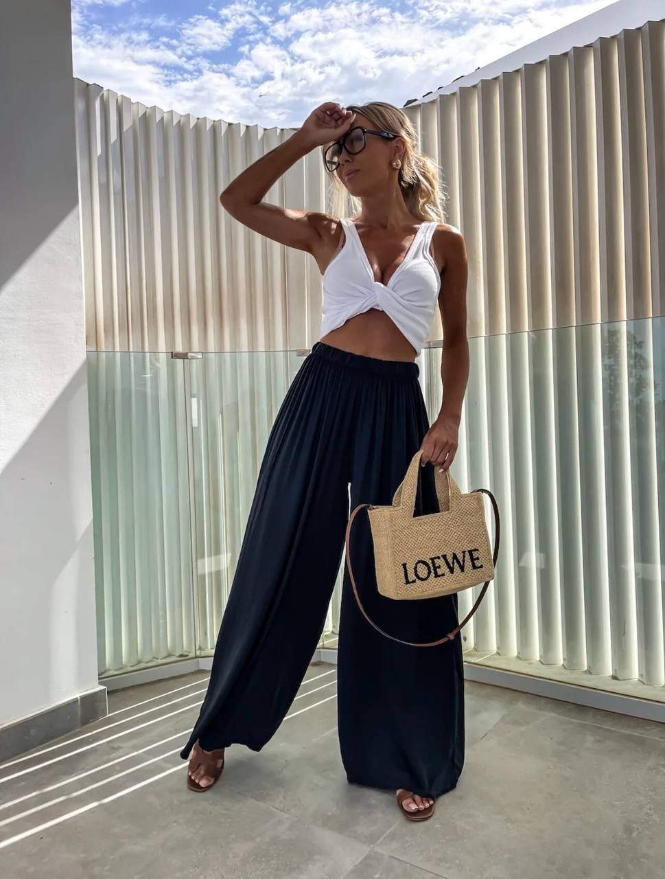 Широкие брюки, создающие ощущение легкости и невесомости. Брюки имеют свободный крой от бедер до лодыжек, что делает их идеальным вариантом для жаркой погоды или для создания элегантных образов.