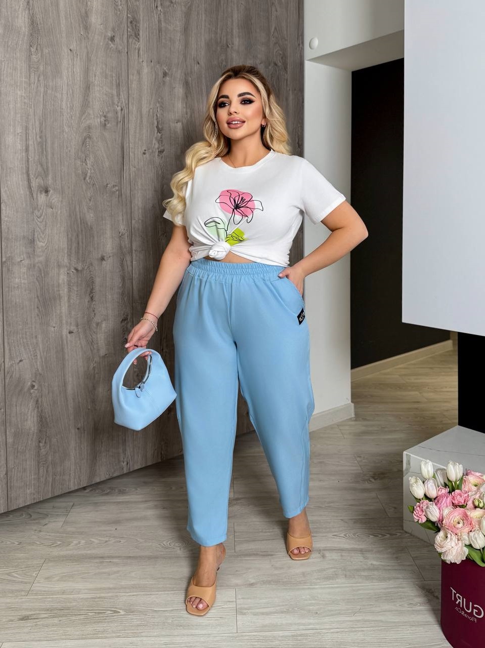 Будьте першим, хто залишив відгук “Легкие тонкие брюки с карманами зауженного кроя+талия на резинке голубой”“