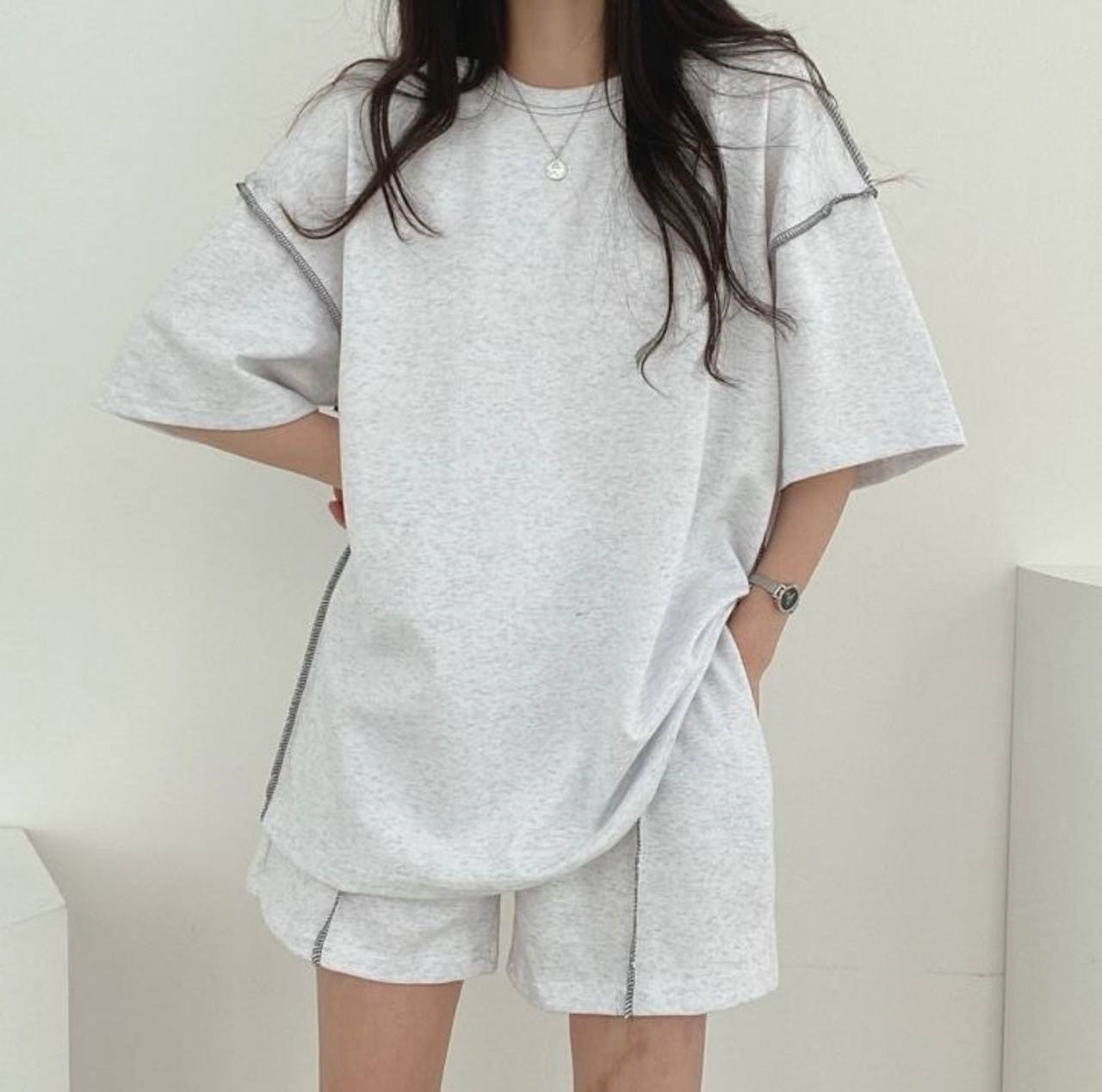 Легкий и удобный костюм, состоящий из футболки oversize и шорт с карманами и шнурком.
