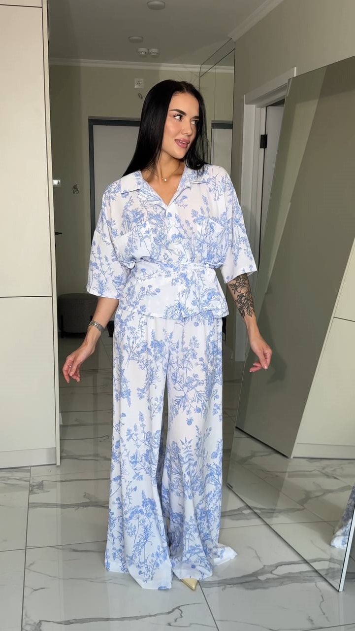 Легкий костюм из софта с широкими брюками и свободной рубашкой – идеальный выбор для лета✨