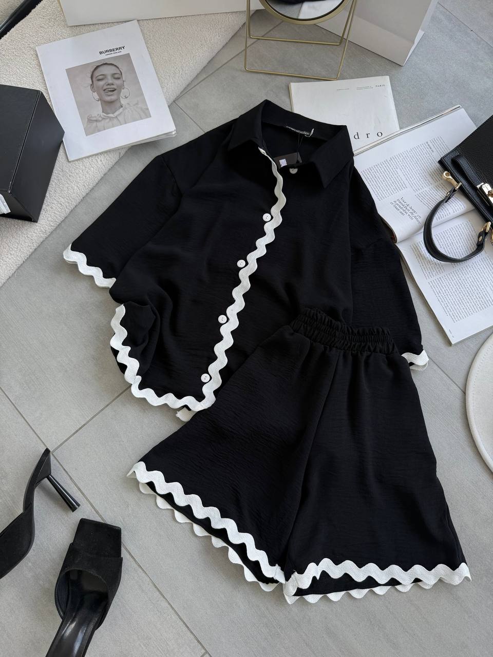 Головна » Магазин » Одяг » Жіночі костюми » Легкий костюм на лето: рубашка+шорты (Креп жатка) черный