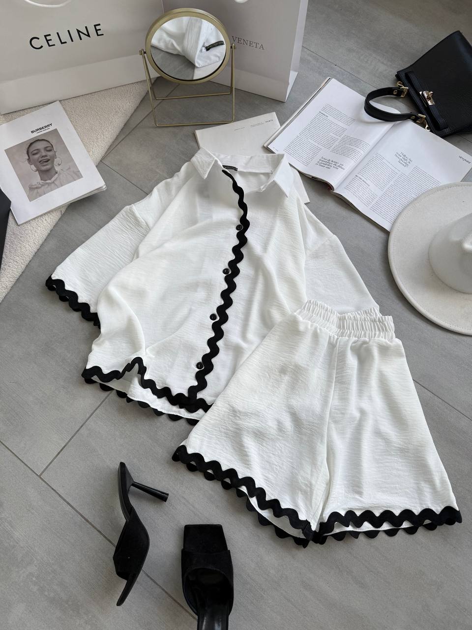 Головна » Магазин » Одяг » Жіночі костюми » Легкий костюм на лето: рубашка+шорты (Креп жатка) белый