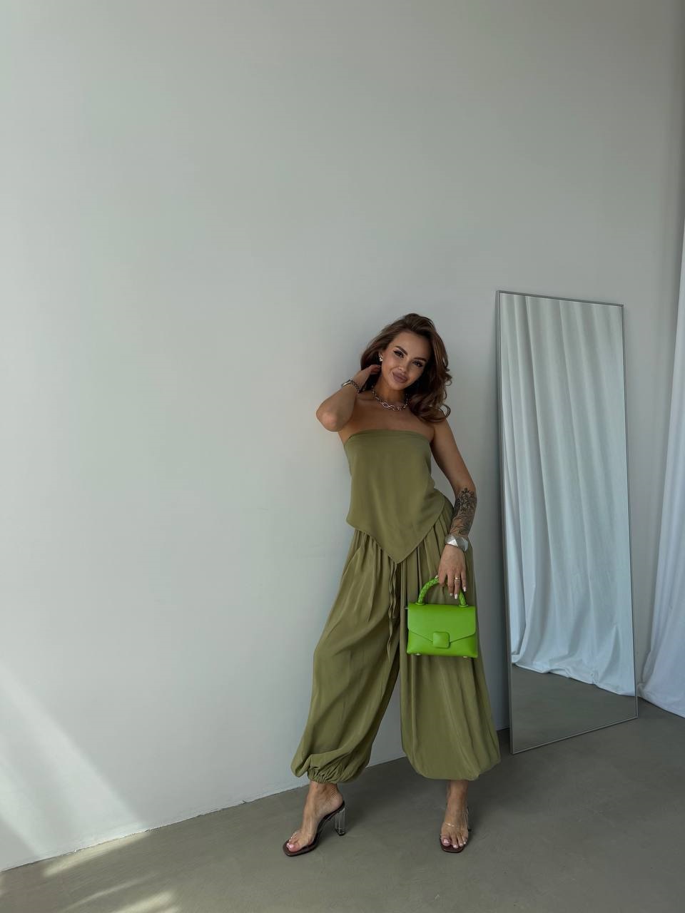 Легкий костюм (штаны Алладины+платок-можно носить как топ) олива