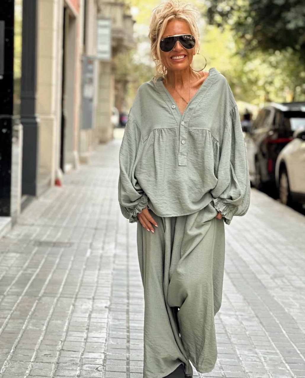 Головна » Магазин » Одяг » Жіночі костюми » Легкий костюм свободного кроя (рубашка с кокеткой+брюки с карманами) олива