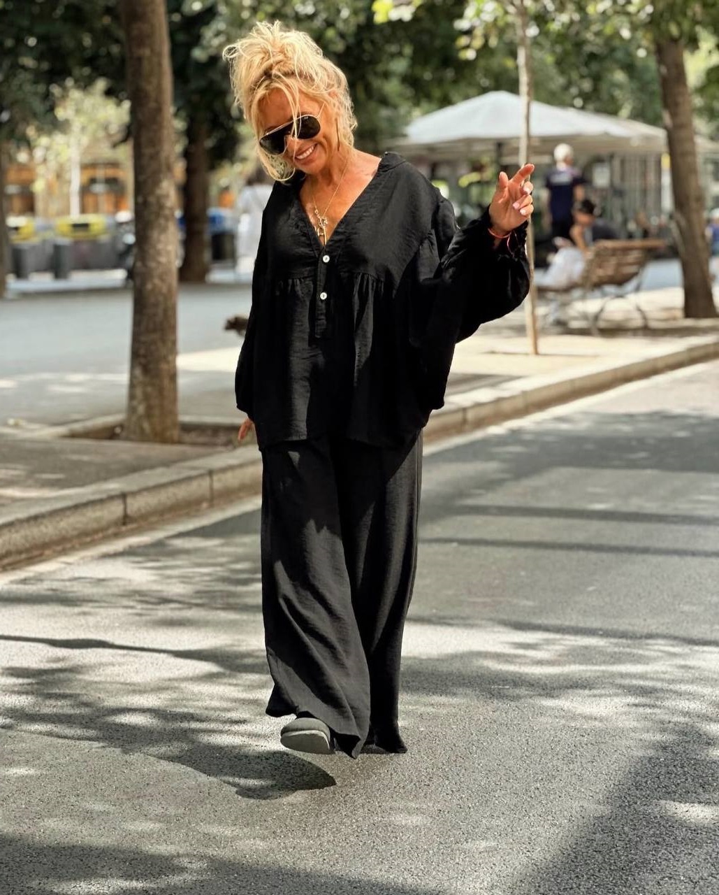 Головна » Магазин » Одяг » Жіночі костюми » Легкий костюм свободного кроя (рубашка с кокеткой+брюки с карманами) черный