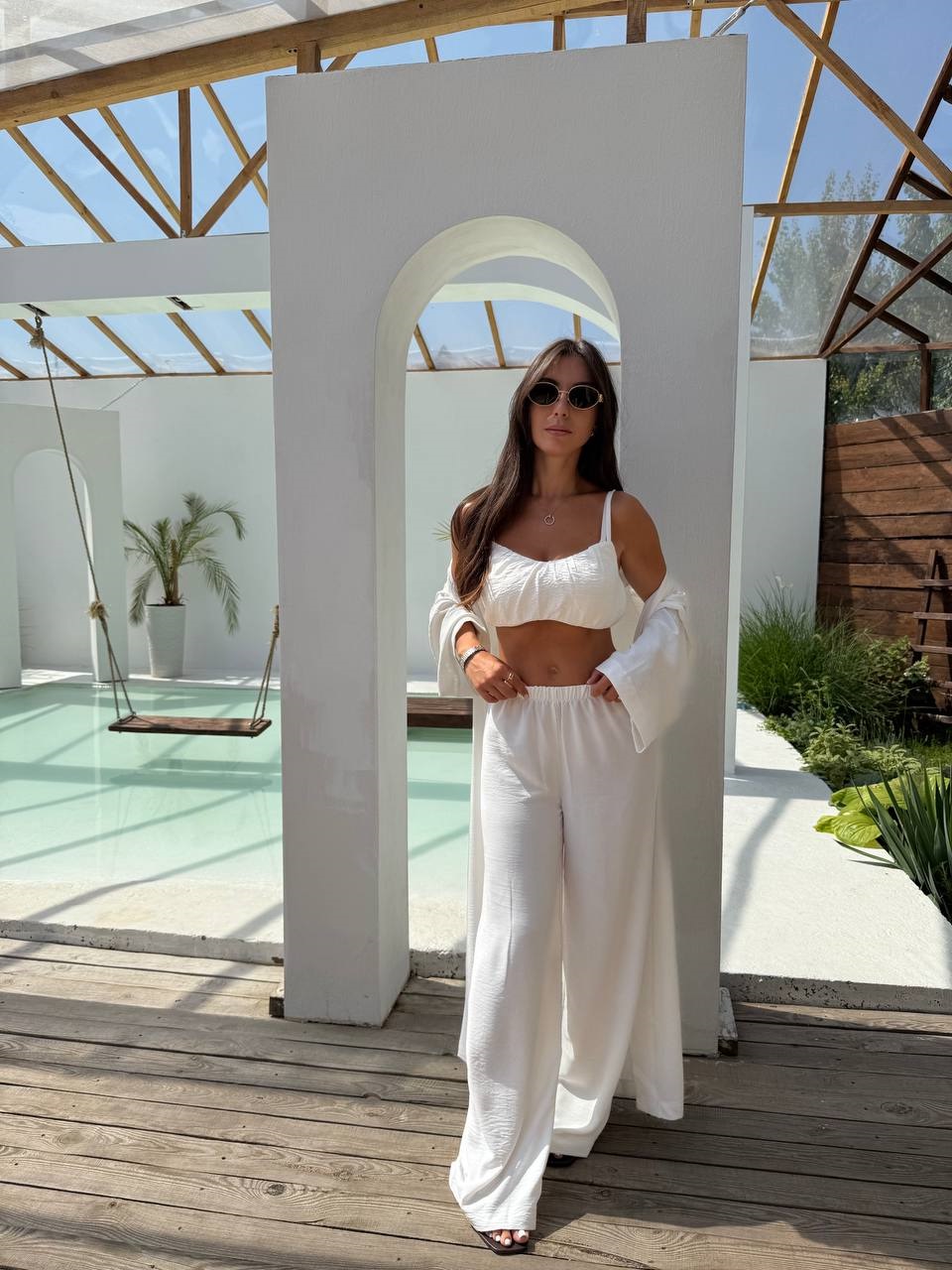 Будьте першим, хто залишив відгук “Легкий костюм тройка (брюки+топ+кардиган) молочный”“