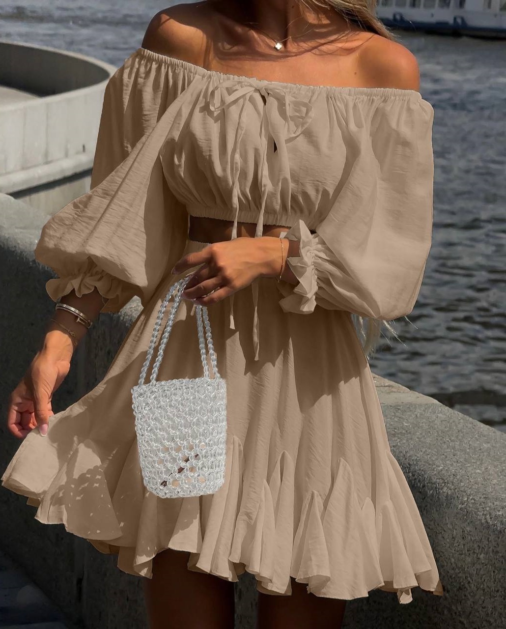 Будьте першим, хто залишив відгук “Легкий костюм (воздушная юбкочка+топ с длинными рукавами) бежевый”“