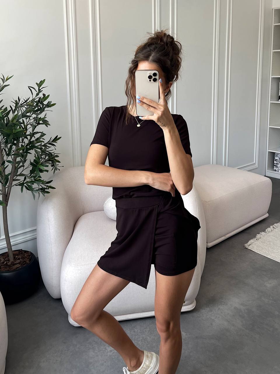 Будьте першим, хто залишив відгук “Легкий костюмчик: футболка + шортики-юбка с карманчиком шоколад”“